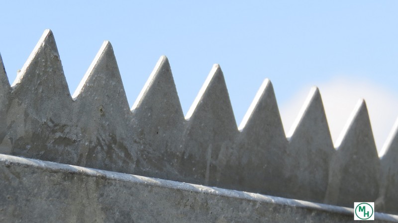 Übersteigschutz Der Übersteigschutz kann aus Zackenleisten, mehreren Reihen Stacheldraht oder S-Draht (Nato-Draht) bestehen. Die Zaunpfosten werden entsprechend verlängert. zurück zur Produktübersicht
