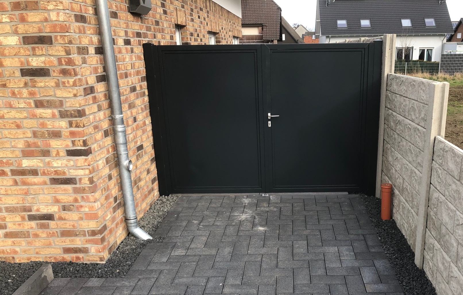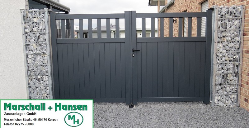 Die Torflügel werden im geöffneten Zustand durch einbetonierte