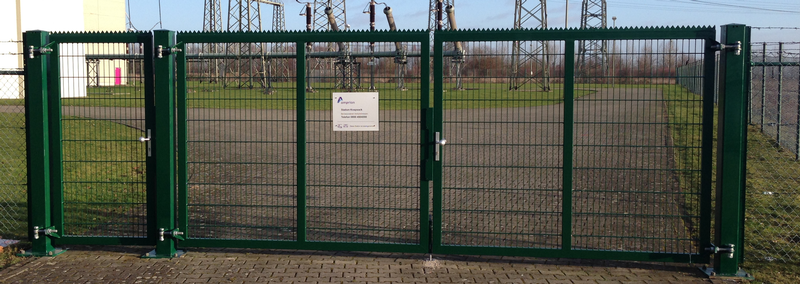 als Rahmenkonstruktion mit eingeschweißter Gittermattenfüllung.